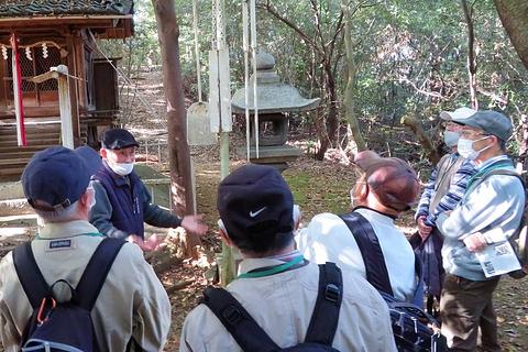 茶臼山公園に向かい、秋葉神社で管理人さんの話を聞きました。