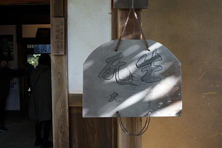それはさておき、 たどり着いた玄関前に 『生死事大』の木板が飛び込んできた。