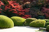 久しぶりに紅葉の詩仙堂に訪れた。ここは、あけっぴろげの室内から紅葉と白砂に丸く刈り込まれたサツキの庭園を眺めることができ、ゆったりとした気分にさせてくれるところである。