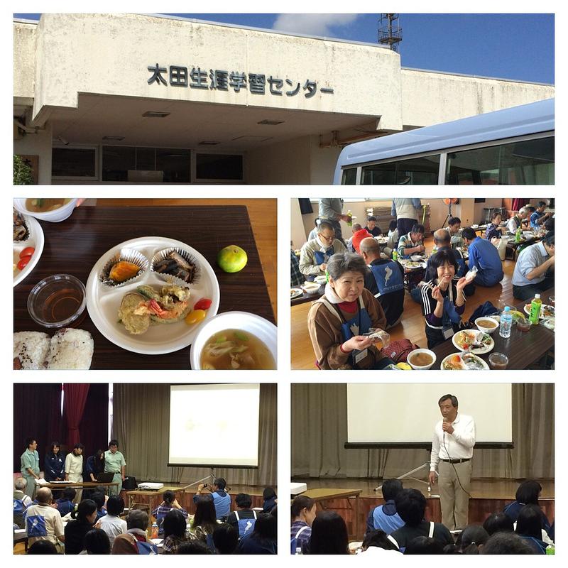 始まる前に地元の方々が振舞ってくださった昼食は、菜種から作られたナタネ油「油菜ちゃん」を使った天ぷら。サクサクとした軽い味わいに箸が進みます。秋刀魚、カボチャなど、秋の味覚を堪能させていただきました。