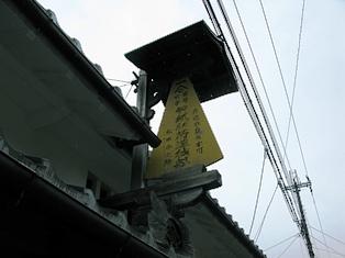 鳥居本宿は合羽の名産地。これから山道に向かう旅人にとって、合羽は必需であったと言えよう。合羽をたたんだ形をした看板が、今も軒先に吊り下げられ、当時の様子を伝えていた。松屋さんは、1970年で合羽の製造を止めていた。