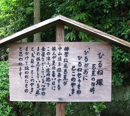 この解説版には、中山道を往来する旅人が夏の暑い日に、この涼しい境内でつかの間の休息をしている「床」と「鳥籠山(とこのやま)」をかけて詠われたと書かれていた。壬申の乱で戦場となった東山道の鳥籠山(とこのやま)のこと。