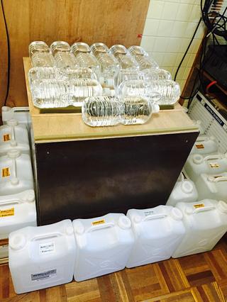 先日は、食品の測定時に自然放射線の影響をできるだけ受けないよう、測定器の周囲に大量の水を置いたり、鉛を置いたりしました。