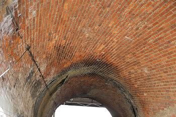 こんなところにも「ねじりまんぽ」がありました。強度を増すために煉瓦の積み方向をねじって作る工法。京都蹴上で初めて見たトンネルと同じ工法のトンネルが見られるとは思いませんでした。