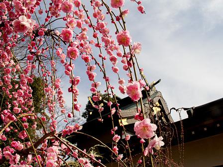 このアングルが結城神社の枝垂れ梅人気の撮影スポット