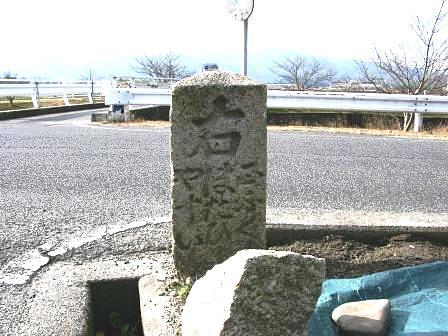 野洲川から山出集落にいく道に傾いて埋まっていたが、現在、三上集楽センターに一時保管。