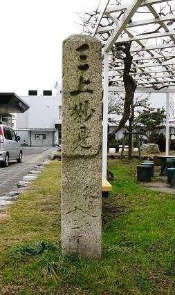 野洲市役所入口の左手の前庭に、なぜか2ツの道標が立てられていた。野洲市にとってゆかりがあるのであろう。早速、調べることにした。道標には、「ミやうけん」と言う文字が刻まれていた。