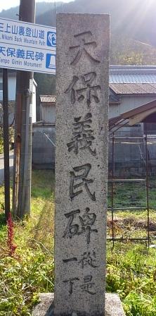 更に、道標をきっかけに繰っていくと、三上山山麓にある「天保義民碑」の道標です。