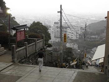 これで2回目。今回は残念ながら曇り空、景色はかすんで展望はいまいち。でも、爽快感はいつもと同じ。どこの高校でしょうか。この階段の往復が体育の授業?