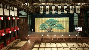 中に入ると昔ながらの芝居小屋が目に飛び込んできます。花道、回り舞台、かけすじ、ブドウ棚などの設備が昔の雰囲気を伝えています。2階桟敷もあり、こぢんまりとまとまった芝居小屋でした。