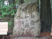 滝の降り口のところに、「白藤の 如く懸かりし 滝仰ぐ」と書かれた句碑があった。