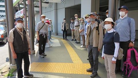 予定通り石山駅芭蕉像前に集合、出発前の確認です。