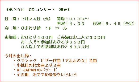 夏向きの涼を誘う音楽を今月と来月は準備予定です。