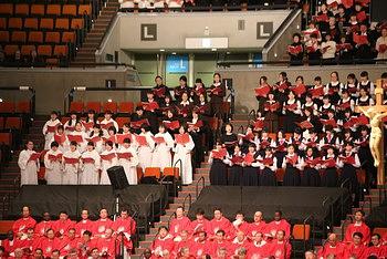 式の中で、大阪のミッションスクール(被昇天学院、ノートルダム女学院、洛星高校、その他)の学生さんたちのコーラス、演奏が花を添えました。