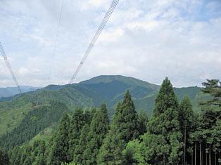 運転手が戻ってくるのを待って出発していった。関西電力の若狭幹線甲・乙2本の鉄塔付近で、目指す行者山を捕らえた。写真では、なだらかな山頂が遥か遠くに見えるが、ここから右手に回り込みながら約1時間の行程だ。
