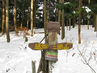 20分ほど登っていくと朽ちた小屋にでくわした。越畑スキー場跡であると「新ハイ」の仲間が説明してくれた。このあたりにはヒノキが育っており、ゲレンデと思われるがその面影がまったく感じられなかった。上りがしばらく続き、積雪量が急激に増していった。