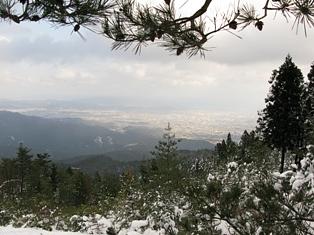 標高890.5mの愛宕山頂上を踏んだのが15時。京都の市街地が望めたが、既に太陽も傾き始め、寒さが深まってきた。
