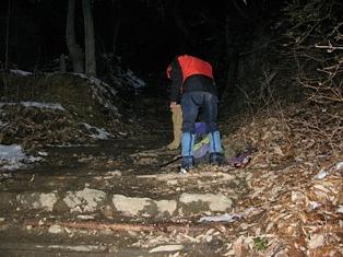 下山開始が16時と遅くなり途中で、日が暮れてしまいライトをつけての下山となった。清滝に下山したのが18時。