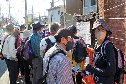 予定通りJR東福寺駅に到着され、集合場所での出発前の確認です(写真は2班)。