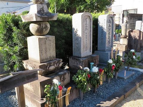 疏水沿いを南下し、寺田屋お登勢のお墓のある小林院に向かいました。 多くの人が一時には入れませんでしたが、手前から3番目が14代目の寺田屋伊助の墓で平成に建てられていました。