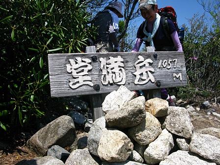 東稜道の最後の登りは、疲労も増し辛い。やっとの思いで堂満岳の頂上に至った。