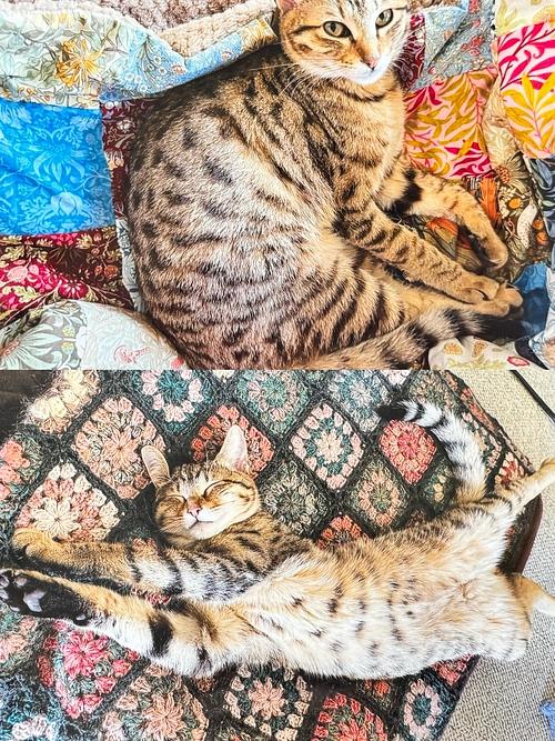 部屋や廊下で追いかけっこをしたり、キャットタワーに駆け上がったり、2匹一緒に仲良く遊ぶのが大好きです。私や夫と遊びたい時はおもちゃを咥えて持って来てくれます。