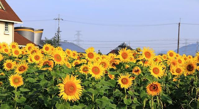 南向きに咲くヒマワリ/道の駅あいマーガレットステーション