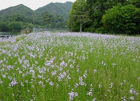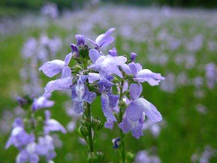 西ゲートの裏口から希望が丘公園の入口付近で、高さ30~50cmの細長い茎に小さい紫色をした花を見つけた。あまりに見事に群生していたので、午後、写真を撮りに行った。