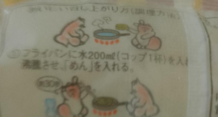 ポンポコ焼きそばは調理法にゆるい絵が描いてあって和みます。