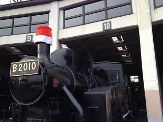 機関車の中に入ったり、サンタさんの帽子やリースでおめかしされた