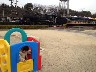 遊び始めて、SLスチーム号乗り場に連れて行くのに