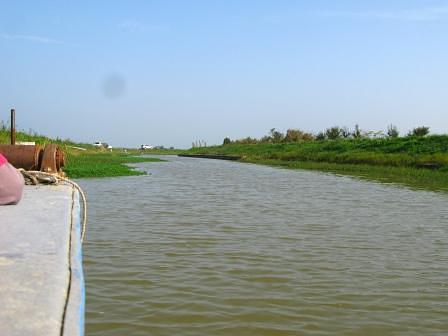 この舟遊びは、「琵琶湖と水辺の環境を守る会」というグループが、家棟川流域の環境を守ろうと、観光船を仕立てて、運営されていた。多数の参加者があり、8名乗りの手漕ぎ舟では間に合わないので、40名乗りエンジン式となった。趣が少し損なわれた感があったが、船首から見える風景は、まだまだ自然が残っていた。この一帯は、旧野洲川の内湖で、水辺には植物が生えて、釣り人が糸を垂らしていた。
