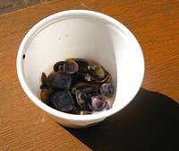 こぼれ陽が射し込むテーブルで、時折、琵琶湖から吹き上げてくる心地よい風を受けながらの贅沢な時間となった。 このシジミは、スタッフがこのマイアミ浜で事前に獲ったことから、この話がきっかけとなり、昔話になった。この辺のマイアミ浜には、当時、水も透き通り、大きなシジミがいくらでも取れたなど、あれこれと、幼少時代を懐かしんだ。