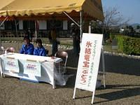 この四方八方に広がるゆったりとした時間が流れている田園地帯を通り、あやめ浜レークセンターからビワコマイアミランドに向かった。人がたむろしているところまで行くと「ええもんポイント②」であった。温かいシジミ汁をもらい、早めの昼食とした。