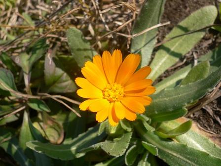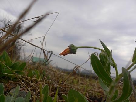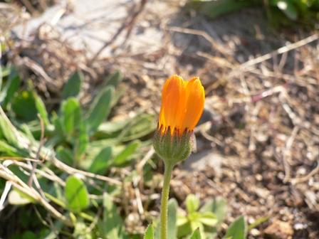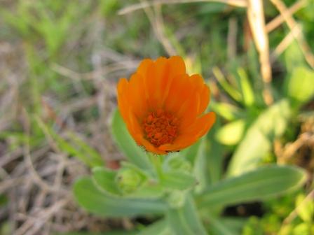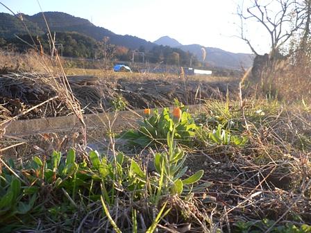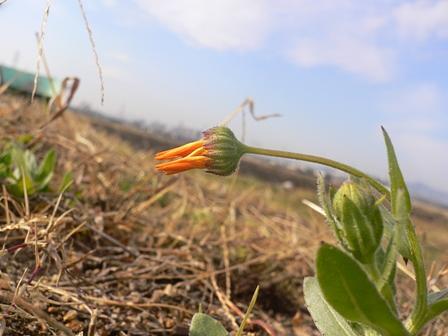 12月4日、希望が丘に行く途中、全く民家が無い田んぼの畦道で、鮮やかな橙色の花を見つけた。