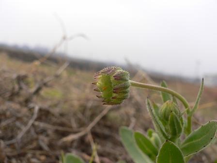 6日、風が冷たいが、日が射し、前山並みの後ろに近江富士が見えます。A花は、1日中閉じてつぼみ。