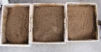 約35ℓ発泡スチロール製トロ箱に表1の通りを配合。配合割合はぼかし肥料の油かす・こめぬかを等量とし、魚かすは1割。培養土は容積比率1・2・3割りの3水準に変えてあります。容積比率とは、1ℓ容器の添加回数。