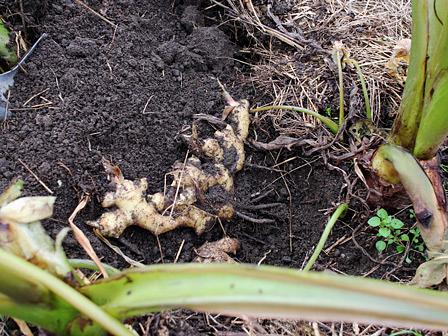 通常、生姜の土寄せは頻繁に行われるようだが、里芋も同様に水やり・乾燥防止で敷き藁など世話をしていので、生姜を取り立てて世話をすることもがなかった。 時折、里芋の生い茂った葉っぱの合間から覗き込み、育ちぐあいを確認していただけだった。つまり、ほったらかしだ。