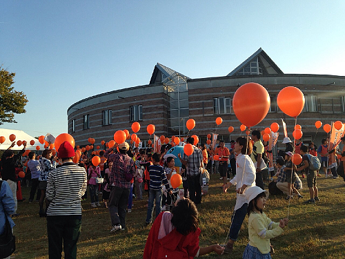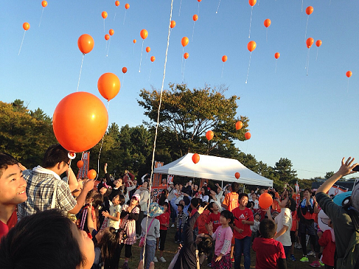 フィナーレには、「オレンジリボン」のカラー、オレンジ色の風船を一人一つずつ持ち、