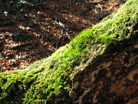 既に秋も深まり落葉樹は、紅葉を過ぎ落葉となっていた。倒木には、淡い緑色の様々な苔が張り付いて、太陽光が差し込み、春を感じさせる長閑な情景があった。一般道では見られない自然が広がっていた。