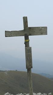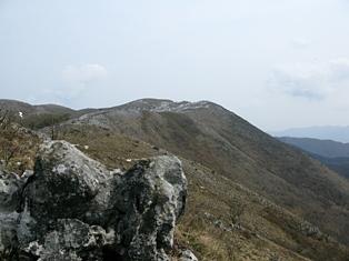 最高峰がこの山域で最も高いところなのだが、三角点のある峰に立ってみると不思議と辺りの山が低く見える。これら3つのピークからなる頂稜部は雄大な山容をなし、カルスト地形の山特有のカレンフェルト(溶食により石灰岩台地の表面に生じる溝(みぞ)状の地形をカレンという)が点在するなだらかな丘陵が広がっていた。