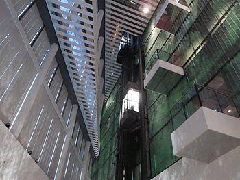 ビルの内側が吹き抜けになっていて、エレベータも吹き抜け側に付いています。