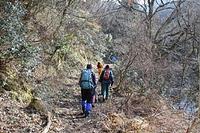 冬季の頂上での長居は危険である。再び鳥居を潜り、早々に下山にかかった。頂上を踏んだことの満足感からか、全員足取りも軽く、同じコースだが主に林道を下った。