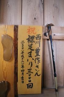 あたりを見渡すと”3000回記念”と書かれた文字があった。書かれた通り独り言を言っていると、仲間が”裸足まいり”だ、と念を押された。はだしと言うことは、この山は古くから山岳信仰の霊山である。修行していたのであろう。
