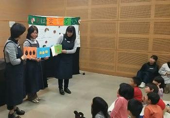 三人姉妹が、息を合わせて3冊の絵本をよみました