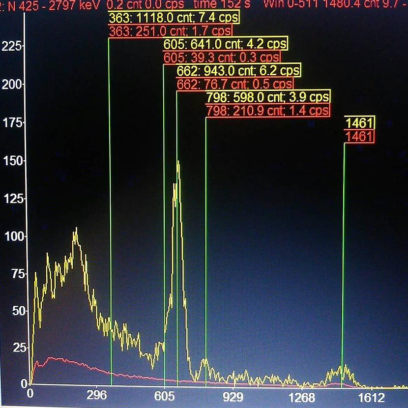 測定開始した途端にCs137がいきなり1000Bq/kgを超えて、Cs134も立っていて、久々にはっきりと東電福島原発事故由来の放射能汚染だとわかる検体です。