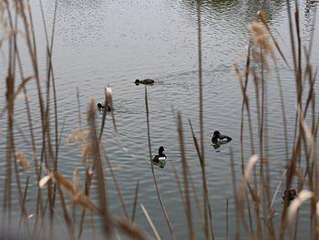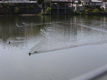 数羽が遊んでいましたが、なぜかカメラを構えていると、池の水面に綺麗な軌跡を描きながらみんな寄ってきます。