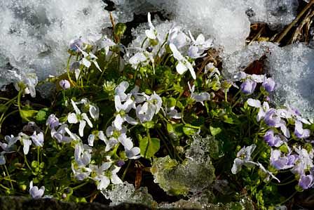 冬の静寂に包まれた朝、雪間から覗く白い花びらに心惹かれ、ガラスの器に水を湛えて一株を移してみました。花は三日間、私の傍らで健気に咲き続けましたが、やがて花びらを落としたので、再び庭土に還してやりました。