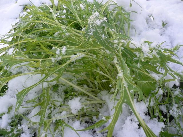 「寒じめ」することによって、葉は凍りつかないように細胞中の水分を少なくし、糖分をため込め甘みが増し、うまみ成分であるアミノ酸含有量やビタミンCも上昇します。日数が長くなるほど糖やビタミン、ミネラルなどの栄養成分が濃縮され、甘くて栄養価の高いミズナとなります。したがって、1~2月頃のミズナが最も美味しい。