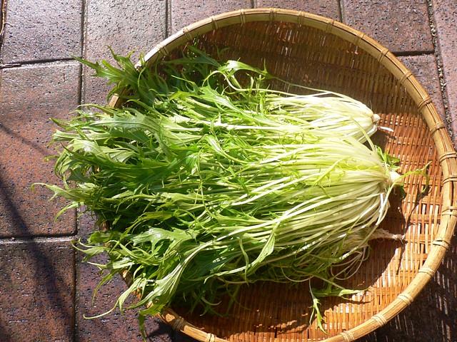 ミズナは、葉軸が白く細いもがいい。葉のぎざぎざもはっきりし、葉色は、黄緑色が上等品。
